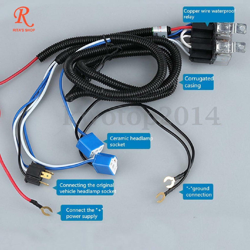 Auto H4 Headlight Ceramic Headlamp Wiring Harness Relay 4 Light Bulb Socket Plug Shopee Malaysia